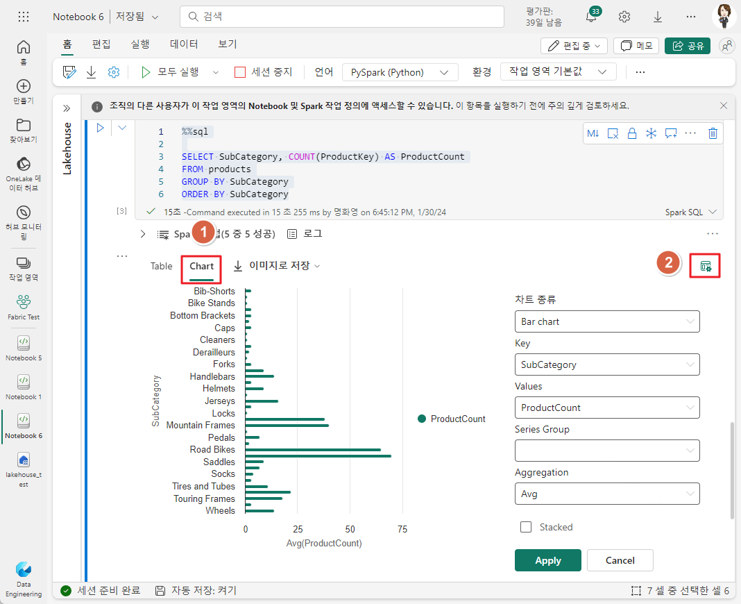 기본 제공 Notebook 차트 사용